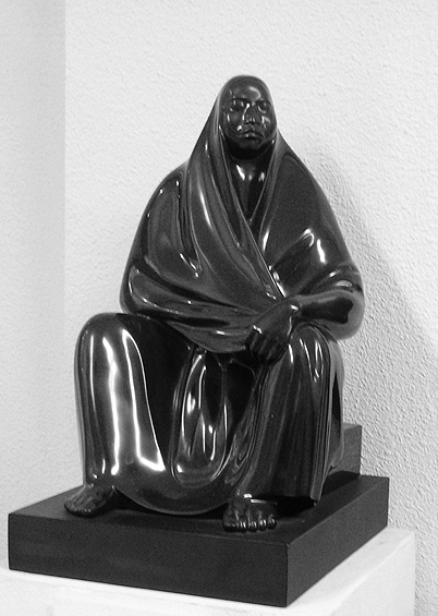 Original sculpture in black marble mounted on a two inch wide wooden base, painted matte black. Hand signed by the artist in the marble on the sculpture's right side: "Amaya 1993". Dimensions: Height: 15 3/4"; Width: 9 3/4"; Depth: 11 3/4" |