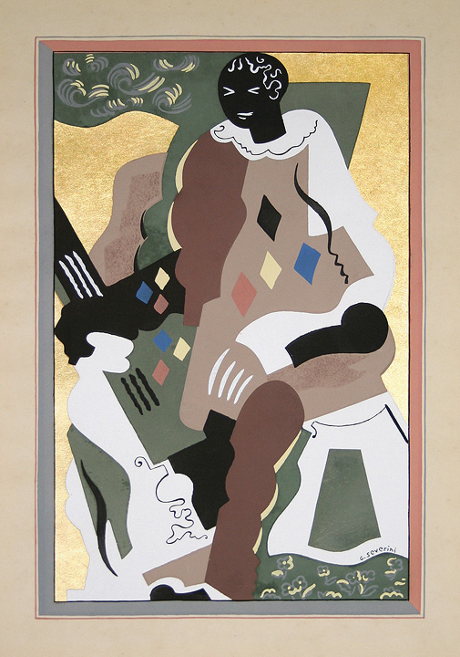 Image size: 13" x 8 1/4", sheet size: 18 1/4" x 12 11/16" Catalogue reference: Meloni 68 Pochoir in colors and with gold leaf on Lafuma paper. Signed "G.Severini" in the plate, lower right. An impression of the definitive state from the edition of 125. Published by Etchells & MacDonald, London, 1930. Plate 10 of 16 from the album: Fleurs et Masques. |
