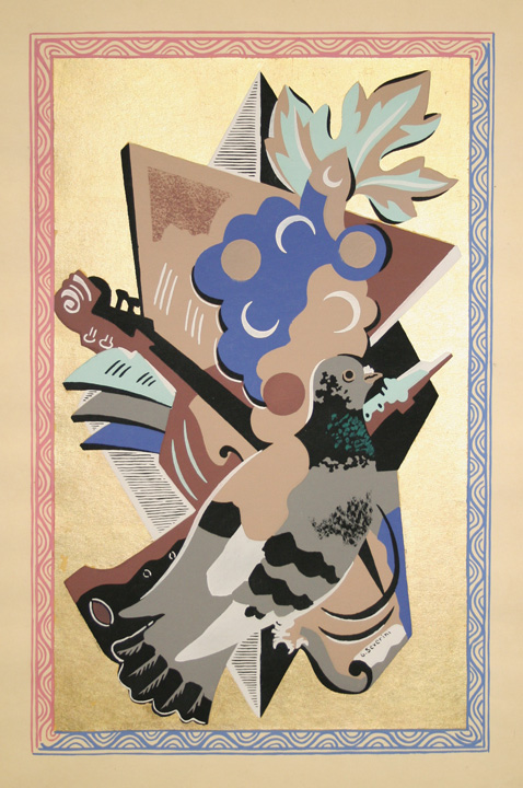 Image size: 13 1/4" x 8 3/8", sheet size: 18" x 12 3/4" Catalogue reference: Meloni 71 Pochoir in colors and with gold leaf on Lafuma paper. Signed "G.Severini" in the plate, lower right. An impression of the definitive state from the edition of 125. Published by Etchells & MacDonald, London, 1930. Plate 13 of 16 from the album: Fleurs et Masques. |
