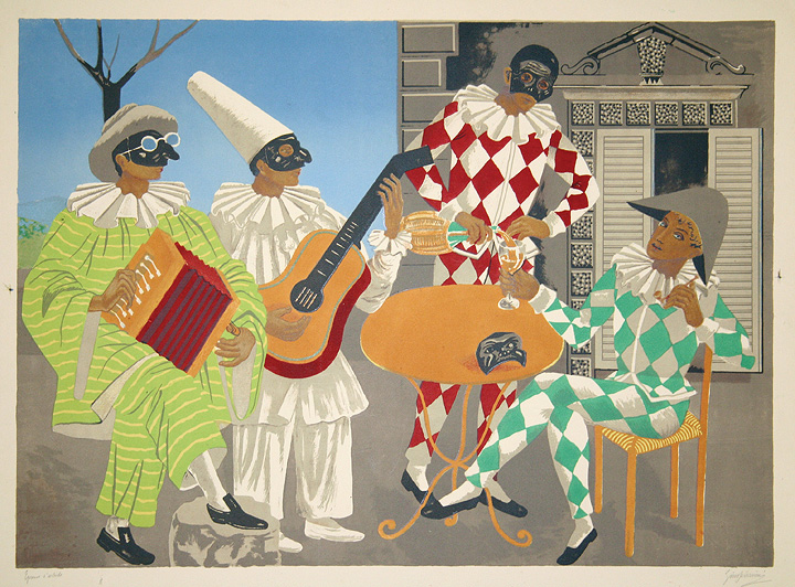 Image size: 17" x 23 1/2", sheet size: 19 7/8" x 25 3/4" Catalogue reference: Meloni 29 Original color lithograph on wove paper. Hand signed by the artist "Gino Severini" in pencil, lower right, and inscribed "Epreuve d'artiste" in pencil, lower left. An artist's proof, aside from the edition of 60. Printed by Michael Cassé, Paris. Published by l'Oeuvre Gravée, Paris-Zurich, 1955. |