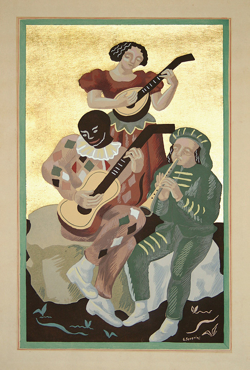 Image size: 13" x 8 3/8", sheet size: 19 5/8" x 14 7/8" Catalogue reference: Meloni 61 Pochoir in colors and with gold leaf on Lafuma paper. Signed "G.Severini" in the plate, lower right. An impression of the definitive state from the edition of 125. Published by Etchells & MacDonald, London, 1930. Plate 4 of 16 from the album: Fleurs et Masques. |
